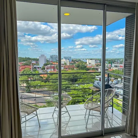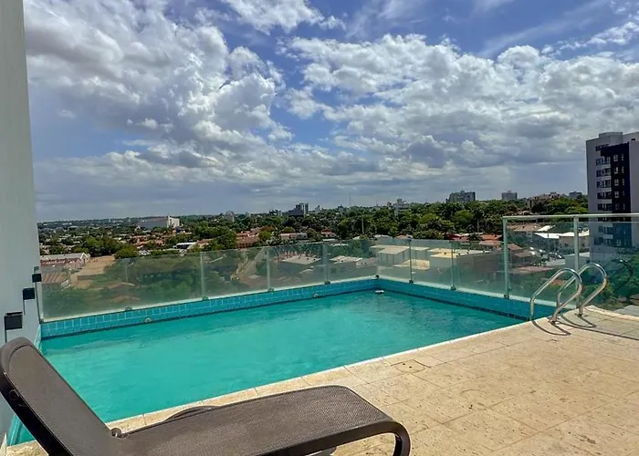 Acogedor Departamento En Asuncion appartement van 70 m^2 ligt 3 km verwijderd van Parque Ñu Guasu en biedt wifi voor zaken of vrije tijd. Het appartement omvat een dakzwembad en een terras voor het comfort van de gasten.